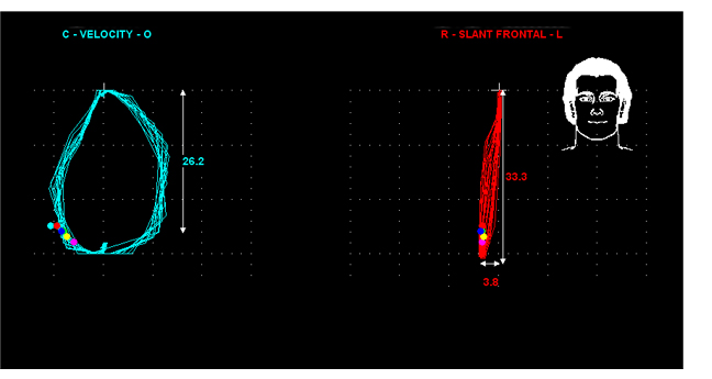 Muscle function activity is monitored and evaluated for strength, symmetry, firing time, and function during rest, swallow, clenching, chewing.