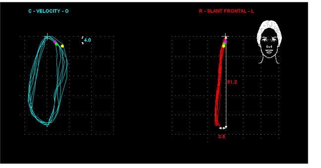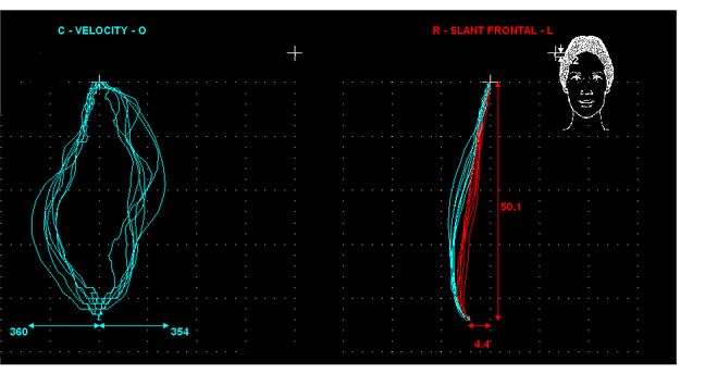 Muscle function activity is monitored and evaluated for strength, symmetry, firing time, and function during rest, swallow, clenching, chewing.
